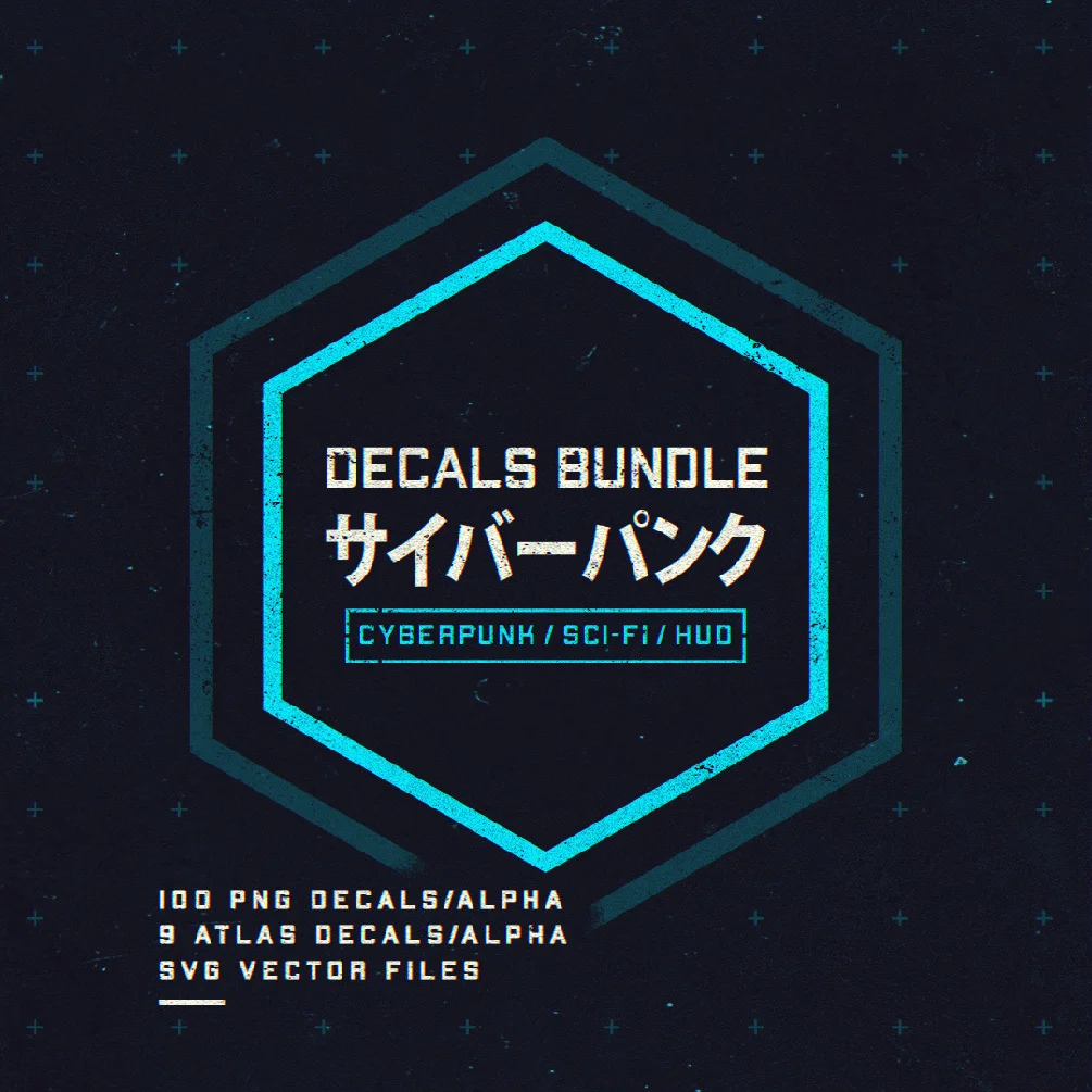 This pack contains 100 high-resolution decals designed for adding detail to cyberpunk and sci-fi aesthetic projects. The graphics are provided in 4K resolution square formats to prevent stretching and distortion upon application to surfaces.