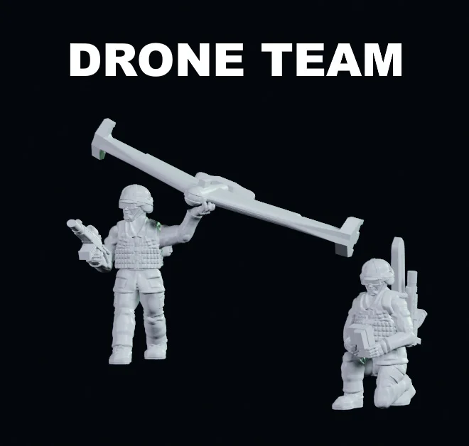 This collection contains 3D printable models of military drone operators representing various international forces, including the US, Russia, Sweden, Israel, China, and Finland. The models are designed at 1/100 scale (15mm), where a standard human figure measures approximately 18mm tall. Both presupported and unsupported files are provided to accommodate different workflows, including FDM and resin 3D printing setups.