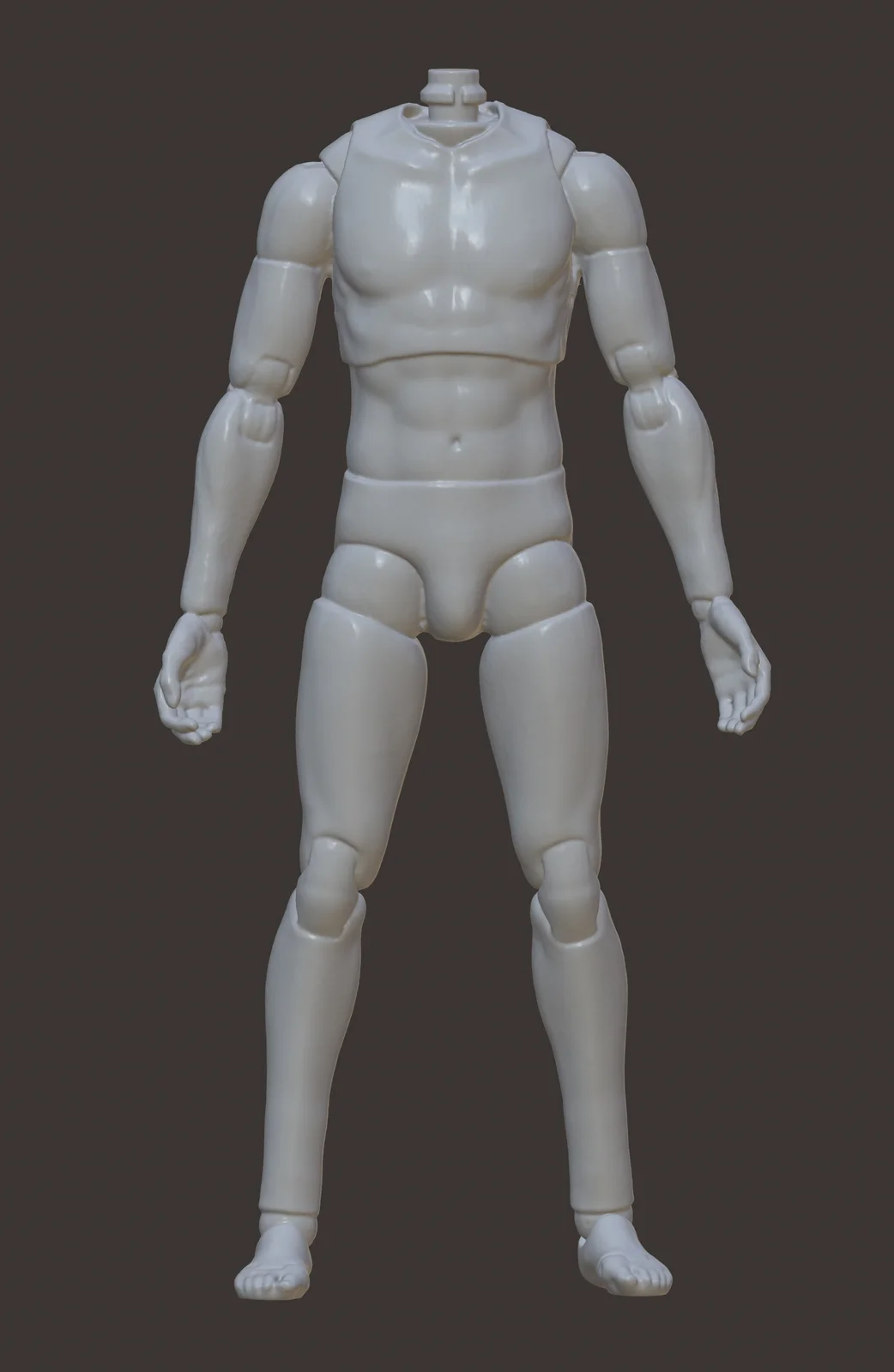 This asset provides a 3D scan of a 1/6 scale DiD 3.0 buck body in STL format. It serves as a digital reference mannequin intended for 3D modeling and sculpting workflows. The model provides accurate proportions for sizing and fitting custom head sculpts, as well as sculpting armored parts and physical accessories to scale.