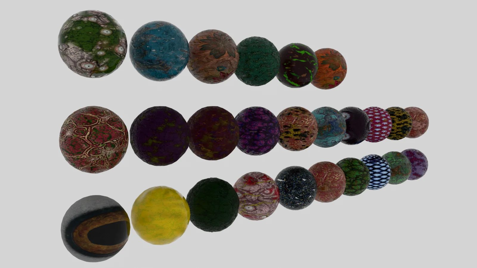 This collection includes 26 organic alien materials designed for sci-fi environments and character concepts. The materials are provided at 2K resolution and come pre-configured in a .blend file, allowing them to be added directly to the Blender Asset Browser for immediate use.