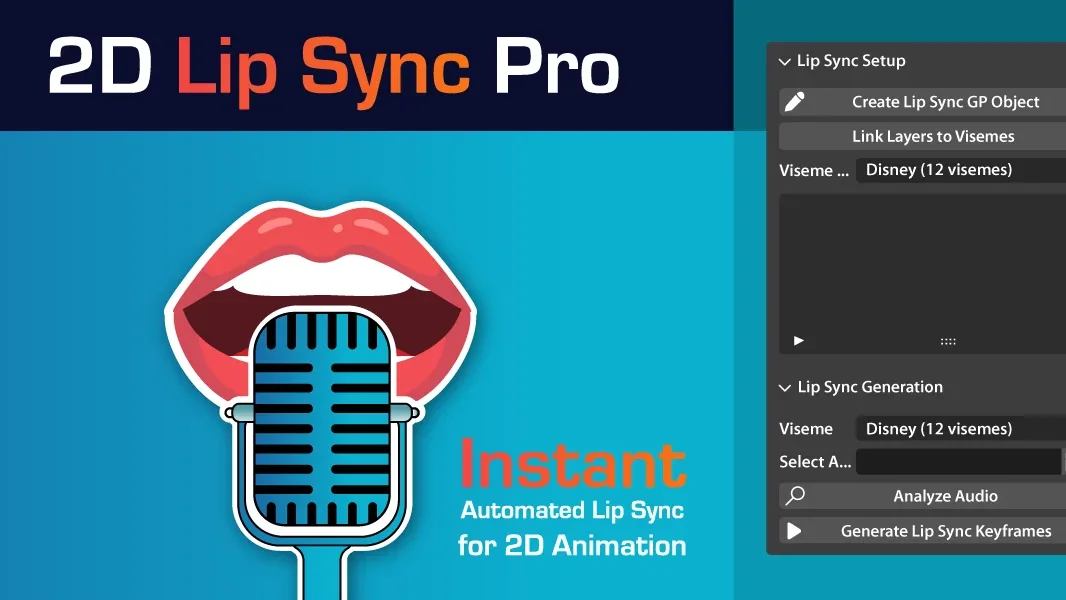 2D Lip Sync Pro automates the process of generating character mouth movements for 2D animations using Blender's Grease Pencil. The tool processes imported audio files and maps speech to visual mouth shapes, eliminating the need to animate lip-syncing manually.