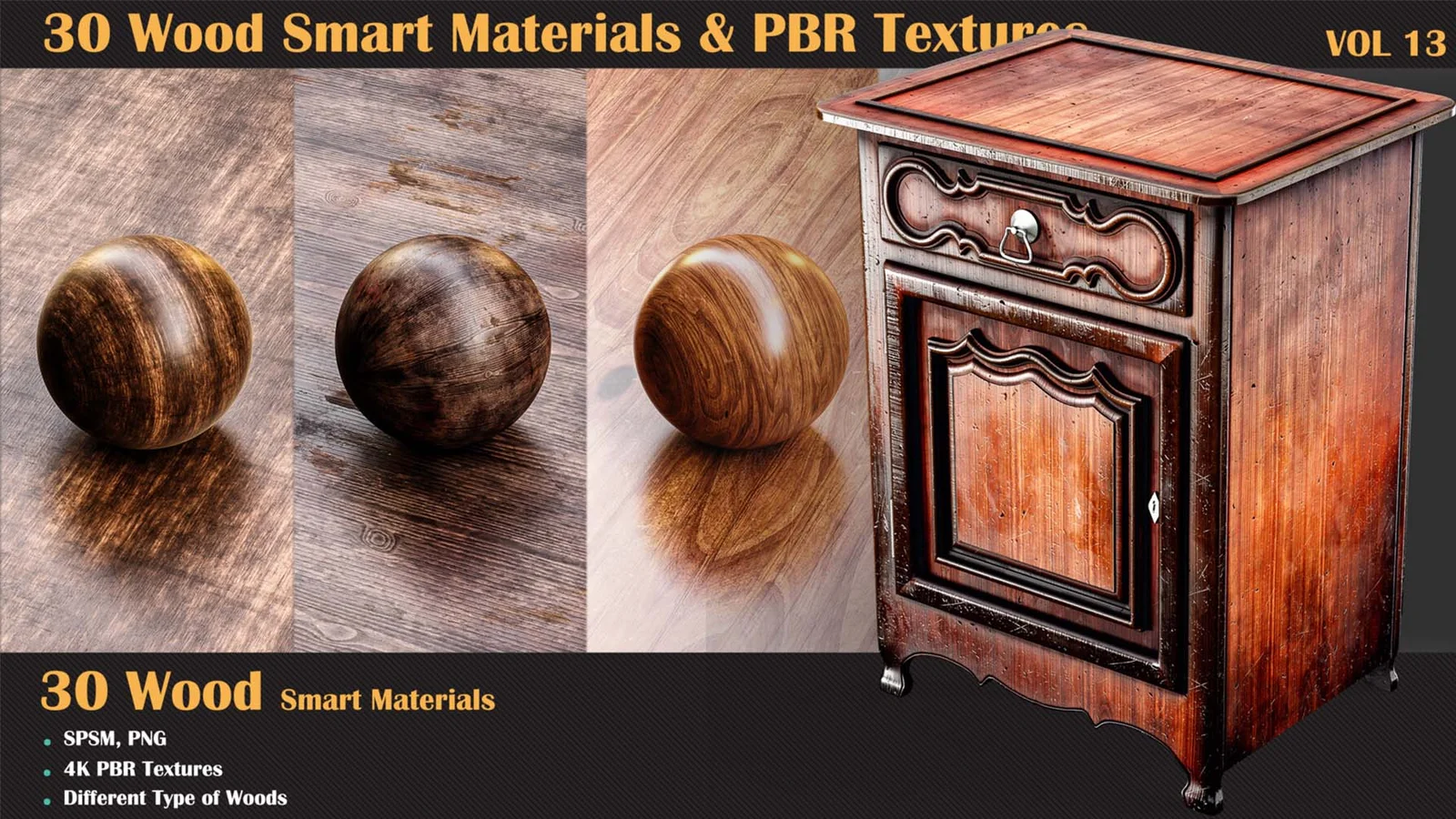 This collection provides 30 wood texture sets utilizing a PBR workflow. Each material is supplied as a 4K resolution (4096x4096) PBR texture set, suitable for use in Blender and other 3D applications.