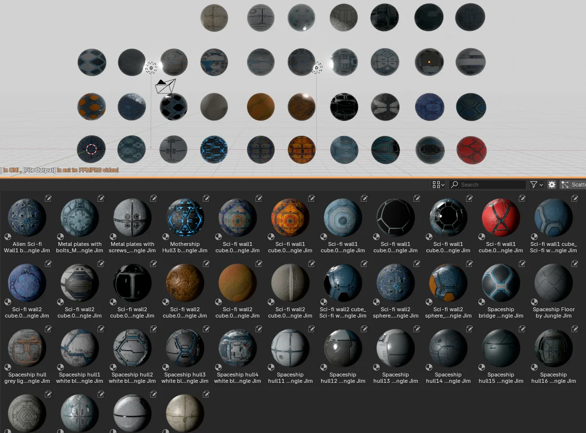 This pack contains 37 sci-fi themed PBR materials provided at 1K resolution. The materials are pre-configured and formatted as a Blender asset library file, allowing for immediate use within Blender's Asset Browser.