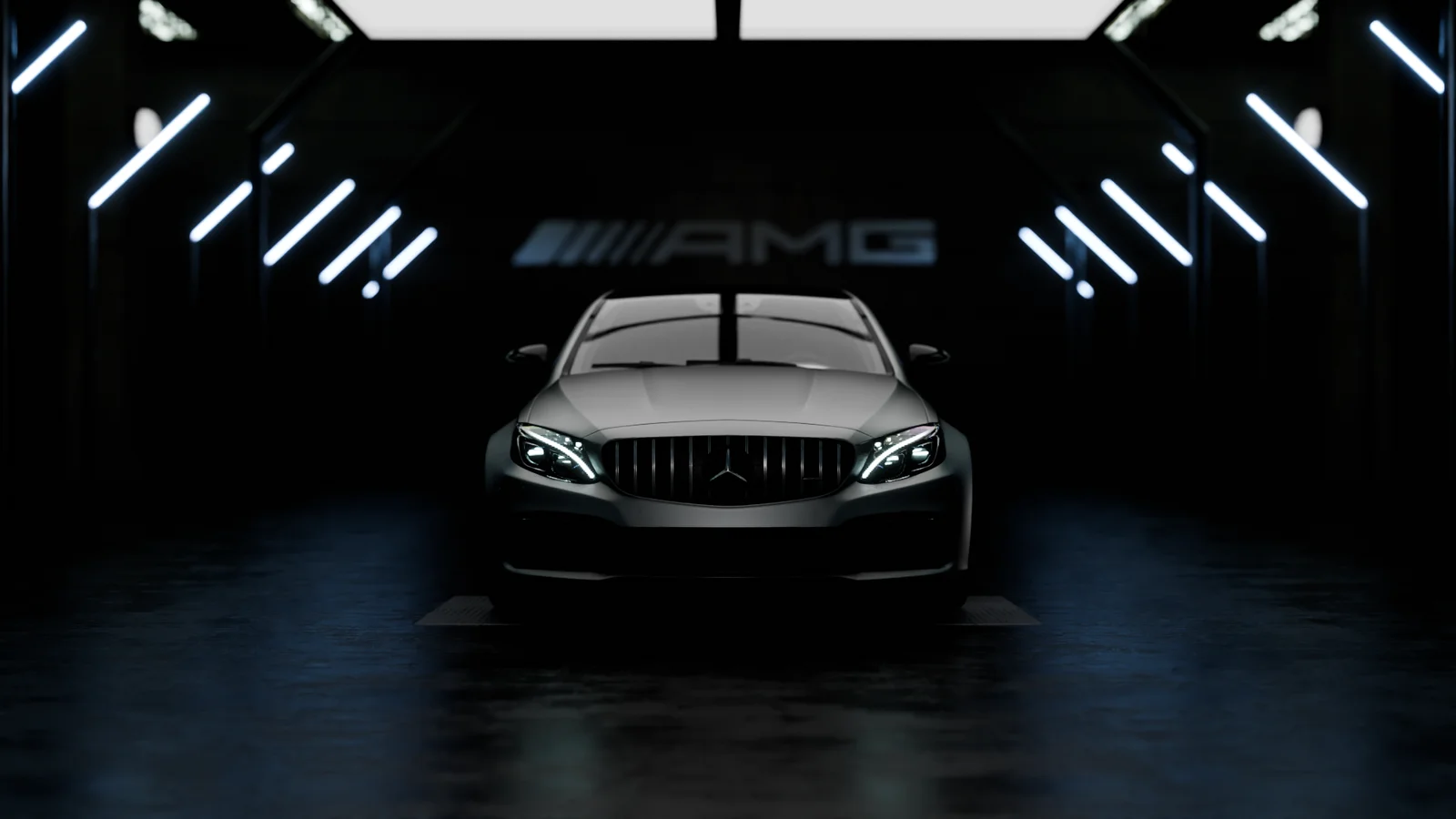 This Blender project file contains two ready-to-render scenes centered around a C63 AMG car. The first scene features the vehicle situated within a garage environment and includes configured cameras, materials, and light animations. The second scene focuses specifically on the engine and its internal components, complete with its own dedicated camera setups, lighting, and materials.