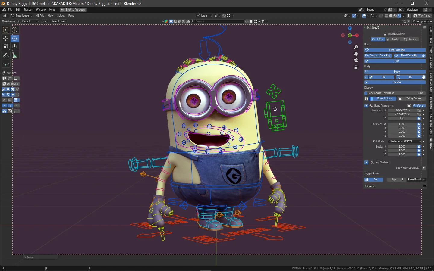 Donny is a fan-made 3D character model inspired by the Minions from the Despicable Me franchise. This fully rigged asset is constructed with clean topology and comes UV-mapped and textured.