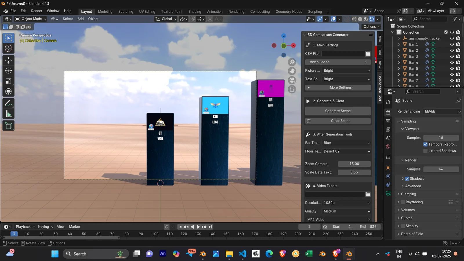 This add-on generates animated 3D bar chart comparison videos directly within Blender. It automatically reads data from a provided CSV file and constructs the 3D scene, creating bars, text labels, and images based on the data points. The tool sets up camera animation that moves smoothly from one data point to the next.