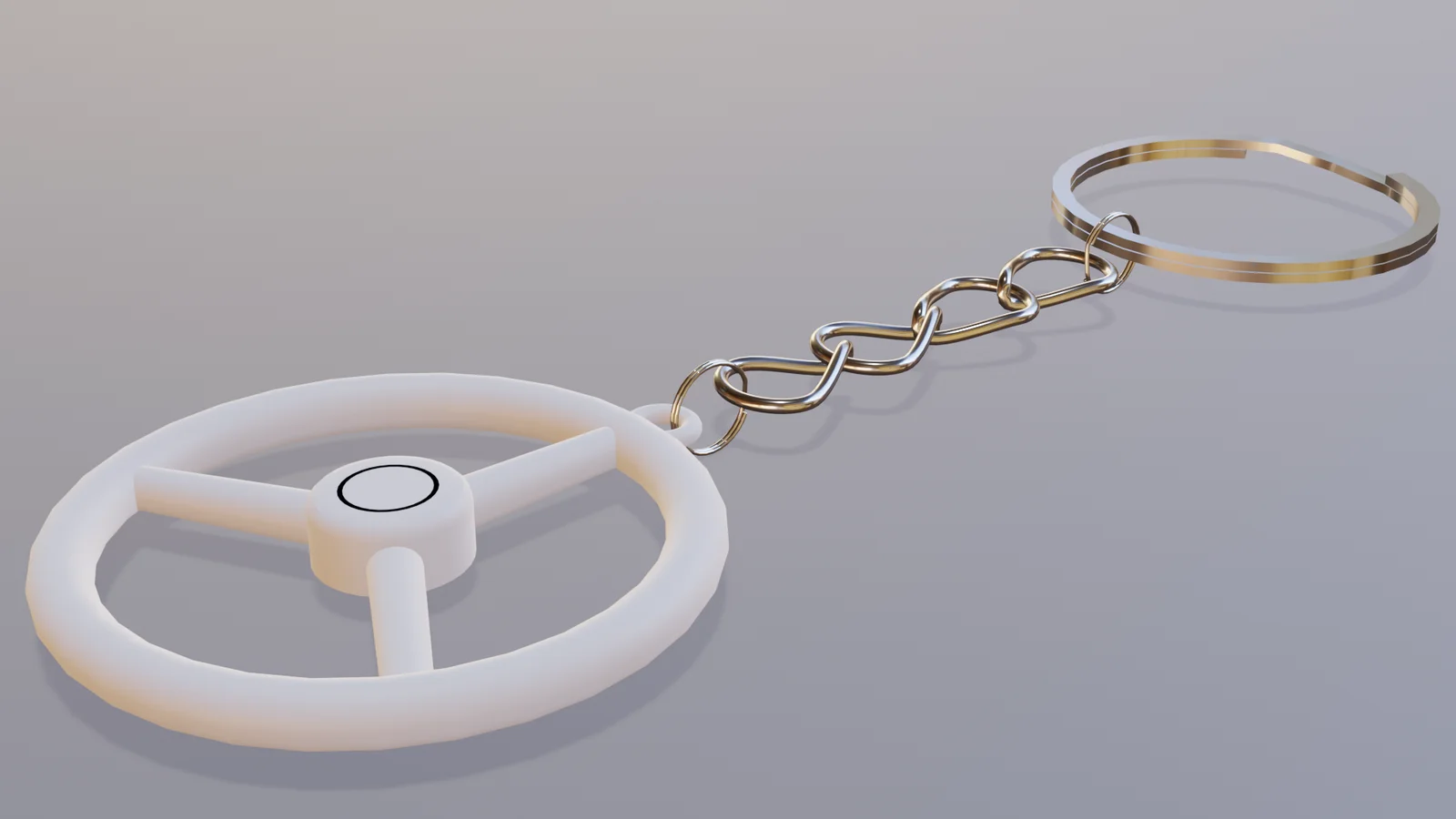 This is a 3D model of a 3-spoke keychain designed for use in Euro Truck Simulator 2 (ETS2). The model features 2K resolution ambient occlusion baking. It is provided in .pmd format. Users will need to use Blender or Zmodeler to add the keychain to their truck models.