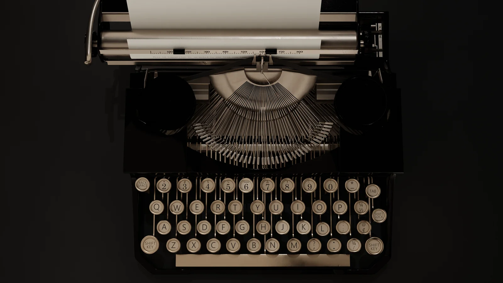 This product features a 3D typewriter model driven by a Geometry Nodes setup that automatically animates the machine's mechanisms based on custom text input. Users can swap the text font and customize individual typewriter parts to suit their scene. The model consists of approximately 109,000 vertices, is fully UV unwrapped, and comes with 4K PBR textures covering diffuse, roughness, metalness, and normal maps.