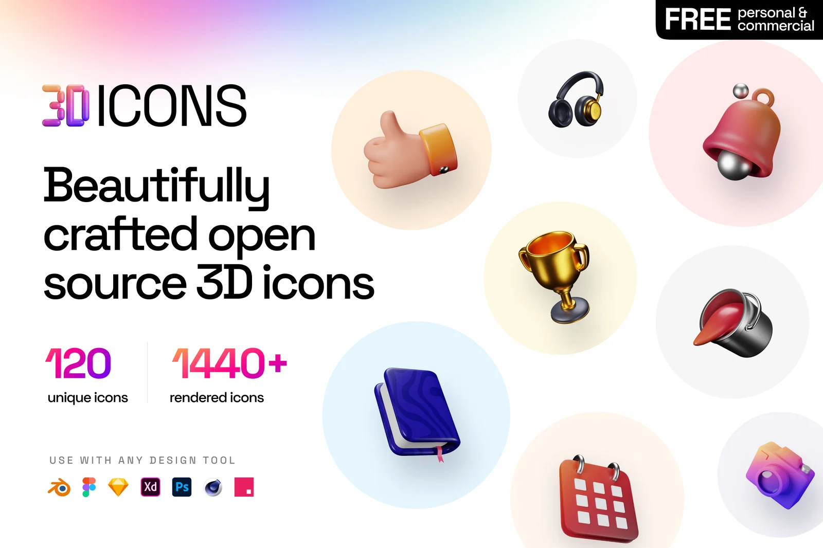 3dicons provides a collection of beautifully designed 3D icons, released under the CC0 license for personal and commercial projects. It includes over 120 unique icons with four color styles, including a clay white option. The package provides pre-rendered PNGs from three camera angles in 2400 x 2400 resolution. A Blender file is included, allowing users to modify, remix, and render the icons for any project.