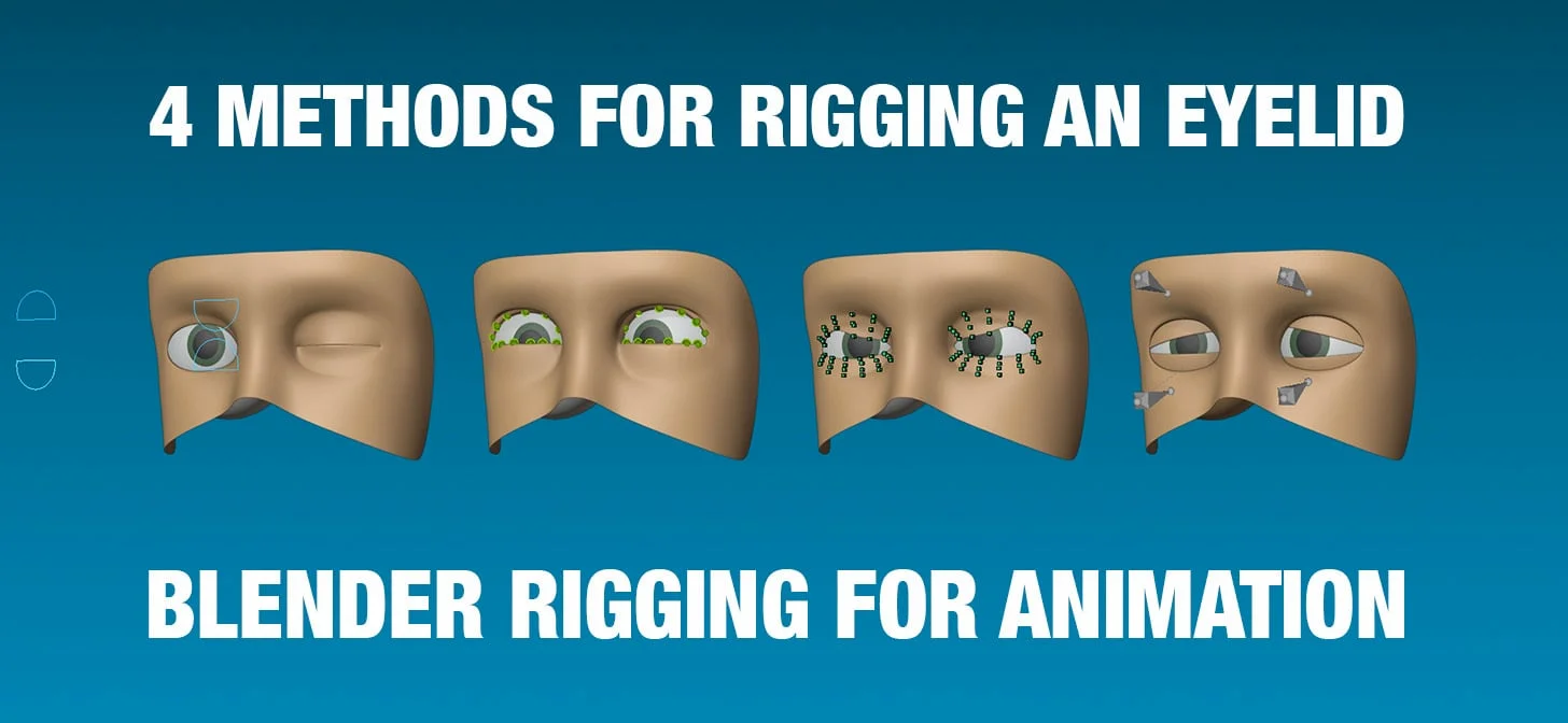 This educational resource explores character rigging by demonstrating four distinct methods for rigging eyelids in Blender. The tutorial series breaks down different approaches to creating functional eyelid rigs suitable for character animation workflows.