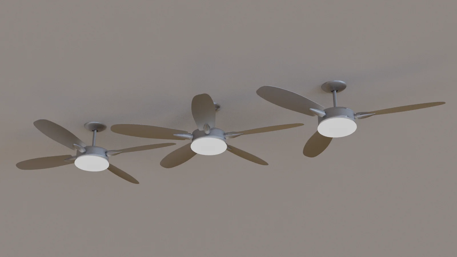 This pack contains three 52-inch ceiling fan 3D models. The selection includes variants with three, four, and five blades. The files are configured for integration with Blender's Asset Browser, allowing for immediate use in interior scenes and architectural visualization.