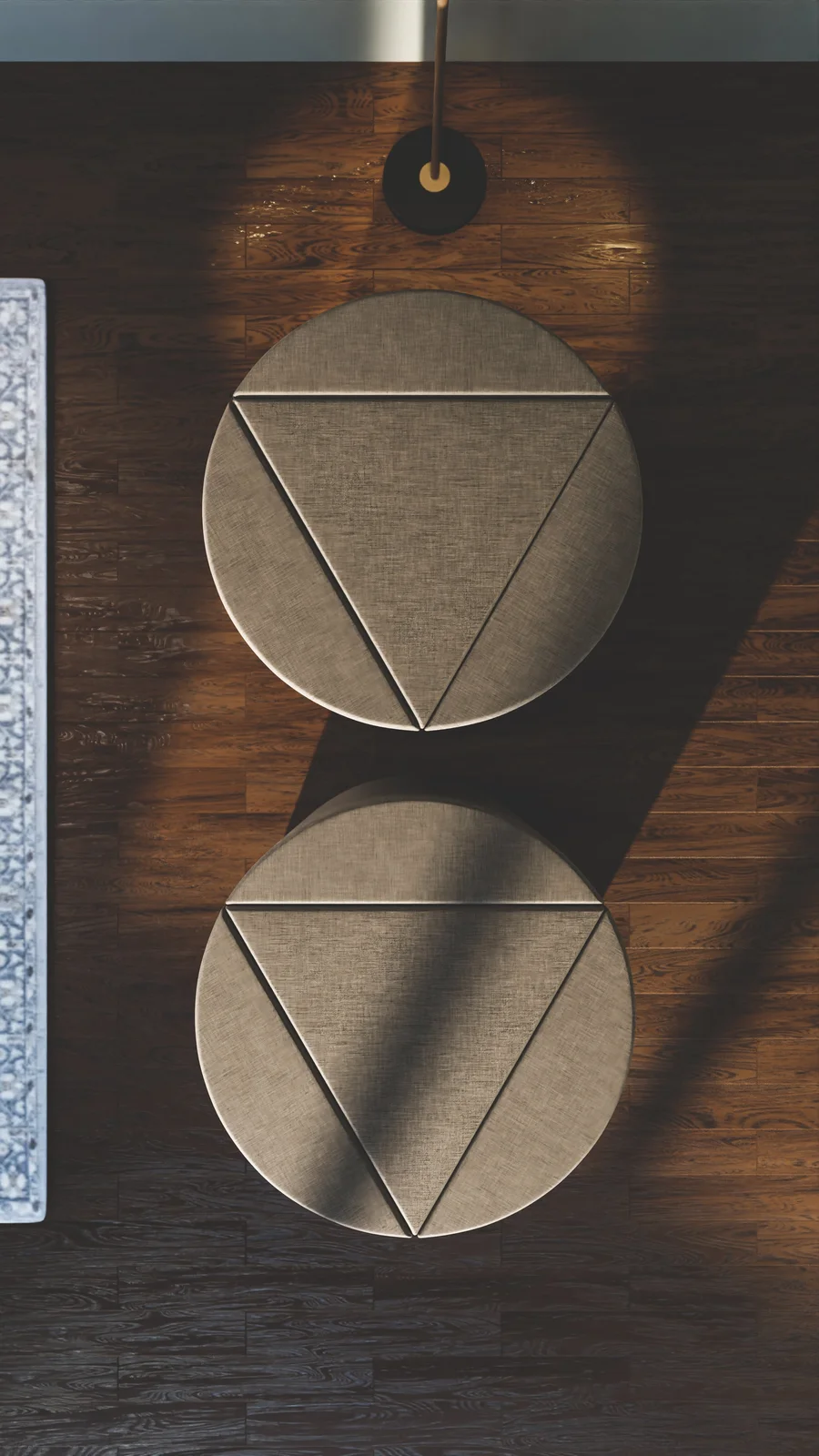 This 3D model features a piece of convertible furniture that functions as a stool and transforms into a single bed. Two units can be combined to form a double bed arrangement.