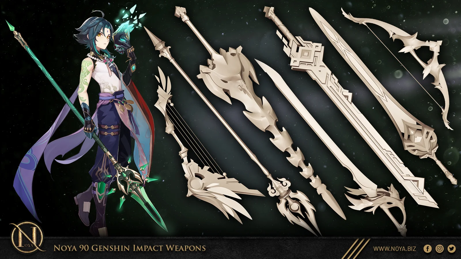 A collection of 90 weapon base meshes designed for 3D modeling, asset creation, and sculpting workflows. Built exclusively with all-quad topology, these models can be cleanly subdivided and readily modified to achieve any necessary level of detail without artifacting. The pack includes four distinct categories of weaponry: great swords, spears, bows, and one-handed swords. All assets are provided in both FBX and Blend formats.