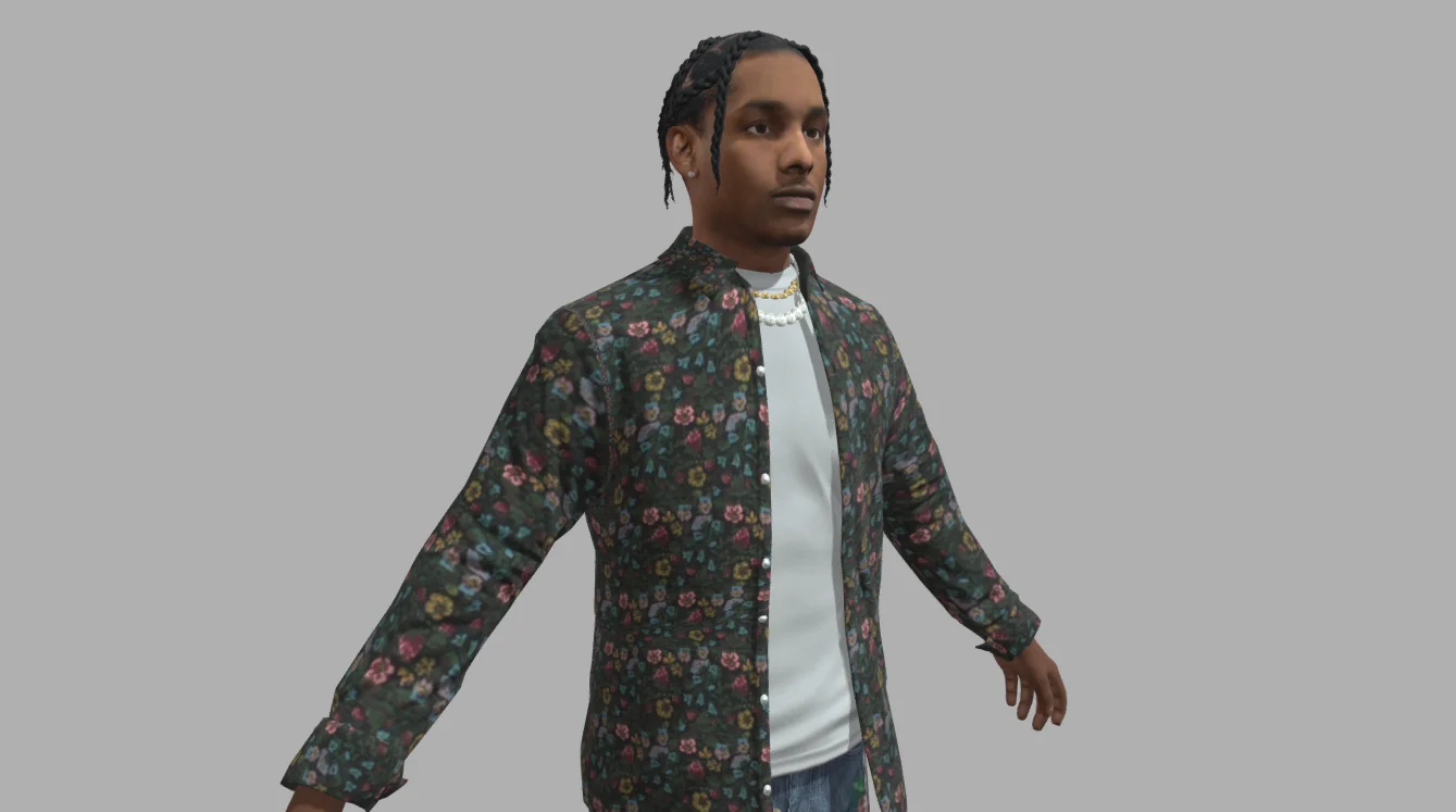 This is a fully rigged and textured 3D character model of the musical artist A$AP Rocky. The asset is built for immediate integration into digital environments, including animation, game development, and virtual reality projects. It features detailed textures and a versatile rig that allows for customized posing and movement.