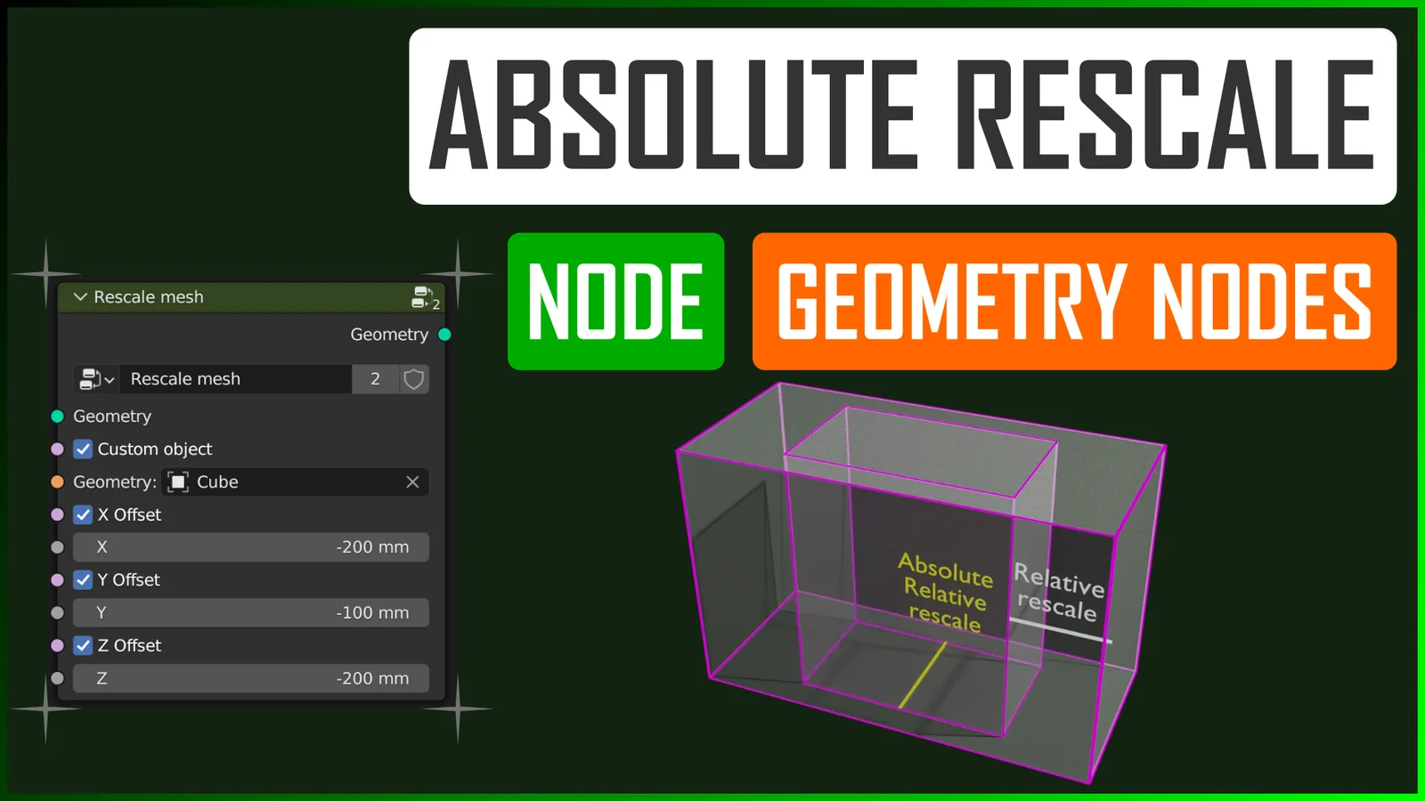 This geometry node group allows you to resize objects based on absolute unit measurements rather than relative scale attributes. By managing dimensions through nodes instead of native object scale, modifiers such as bevel and other structural deformations remain preserved and accurate.