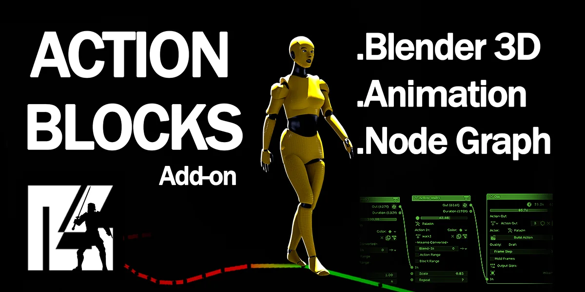 Action Blocks is a tool for constructing complex animation sequences from simpler actions via a non-destructive node graph. It allows users to sequence, repeat, and layer actions to block out animations, cinematics, and animatics without destructive editing. The resulting actions preserve original keyframe data and curve handles without requiring baking or resampling, making them ready for further adjustment or use in the NLA editor.