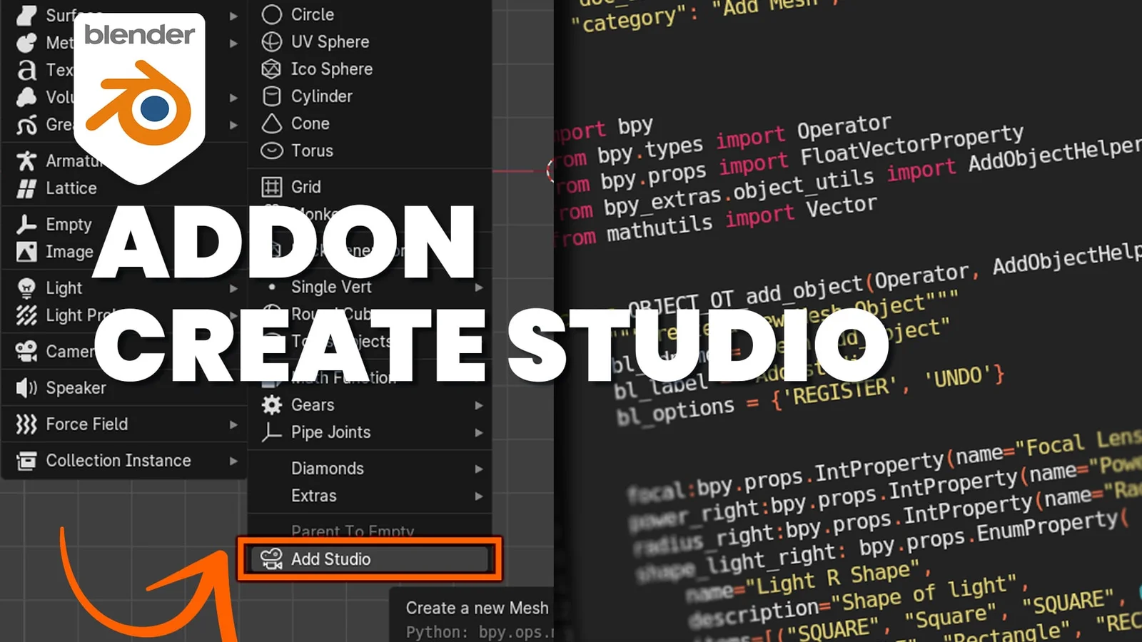 This Python script functions as a basic add-on that generates a studio setup in Blender. Designed to accompany a tutorial on add-on development, it demonstrates how to build simple tools using Blender's built-in UI templates. When installed, it provides an 'Add Studio' operator button, which is intended to be used at the beginning of a new project before other scene elements are created.