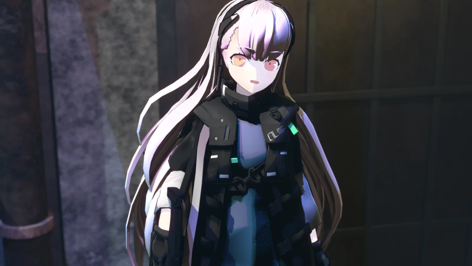 This is a rigged and textured 3D character model of AK-Alfa from Girls' Frontline. The rig includes an IK/FK switch for the limbs and spine, as well as face shape key expressions controlled via bones for blinks, mouth poses, blush, and eye sparkles. It features isolated rotation toggles on the limbs and head, and the hair and pouch bones are set up to work with the Wiggle Bone addon. The model consists of 35,000 vertices and 70,000 triangles when the outline solidify modifier is active. Note that it is not fully UV mapped or optimized for real-time game engines, and it does not include a weapon prop.