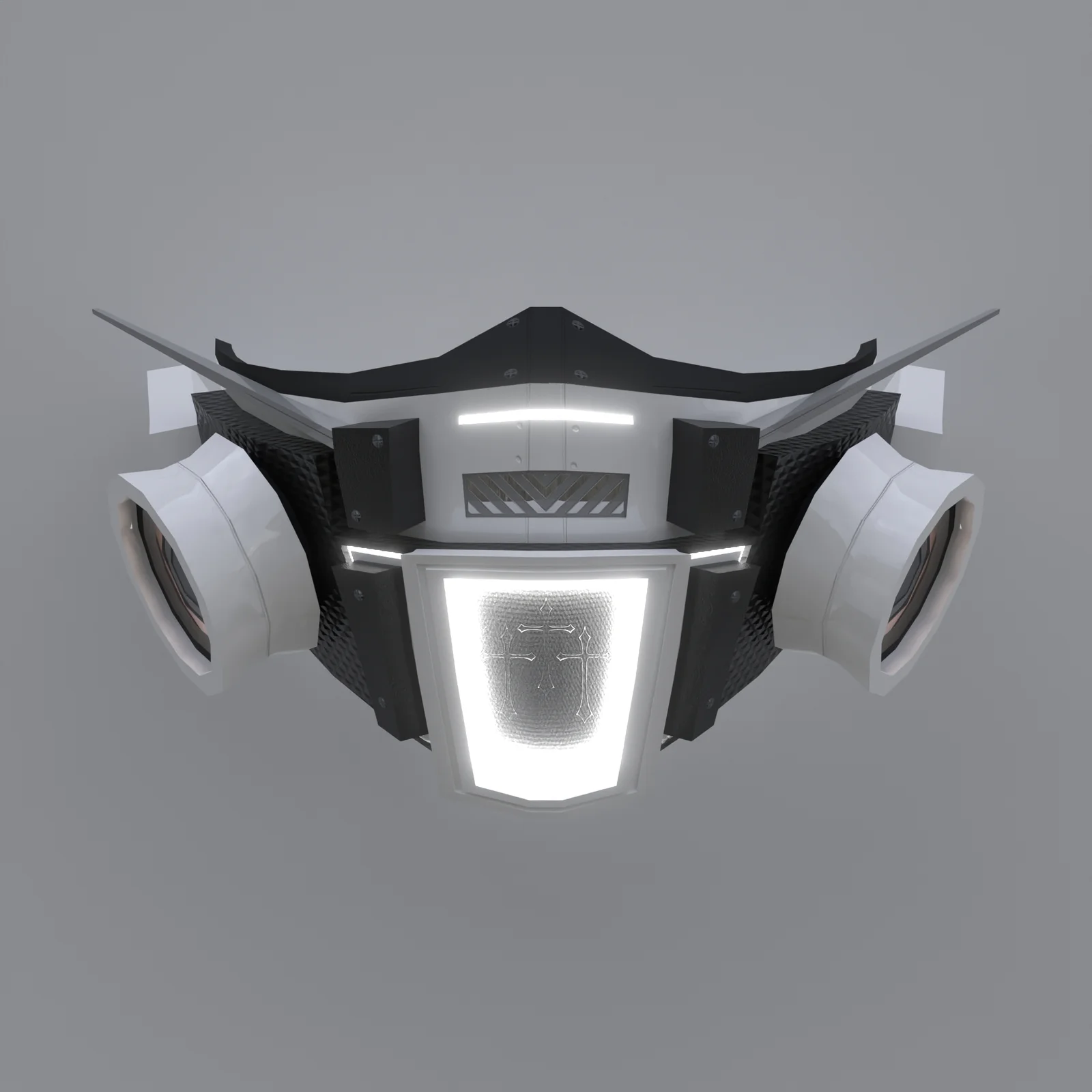 A rigged 3D model of a cyber mask designed as a character accessory. The quad-based mesh consists of 1,614 triangles and comes fully rigged and weight-painted. The asset includes a single material setup equipped with 4K PBR textures generated in Substance Painter, providing both black and white color variations.