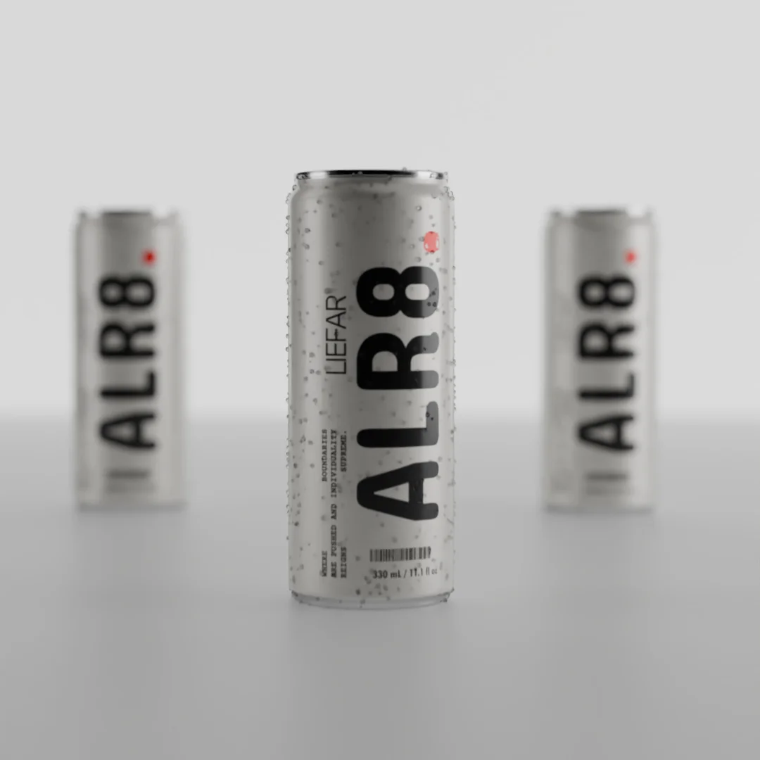 This product provides a pre-animated 3D mockup scene featuring three beverage cans, designed for showcasing packaging designs in portfolios or client presentations. The provided Blender file includes structured materials and designated image slots for inserting custom label designs. A companion Photoshop template is included for preparing the label artwork before bringing it into Blender for rendering.