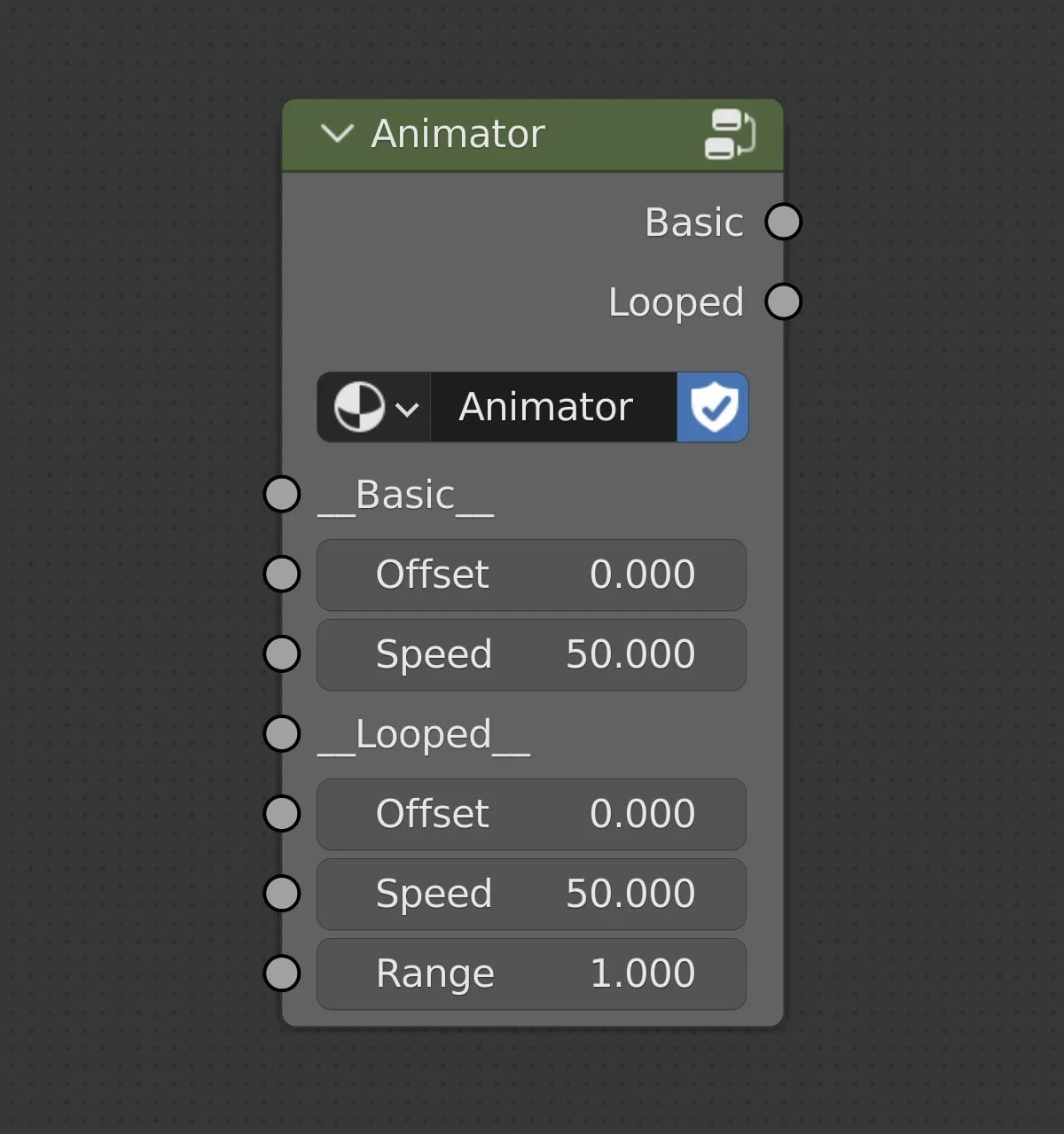 This product provides a specialized node group designed to animate procedural textures within Blender's shader editor. It outputs values that change over the timeline, which can be connected to the inputs of other nodes to drive animation parameters. The node group is configured for use with the Asset Browser and includes a PNG thumbnail.