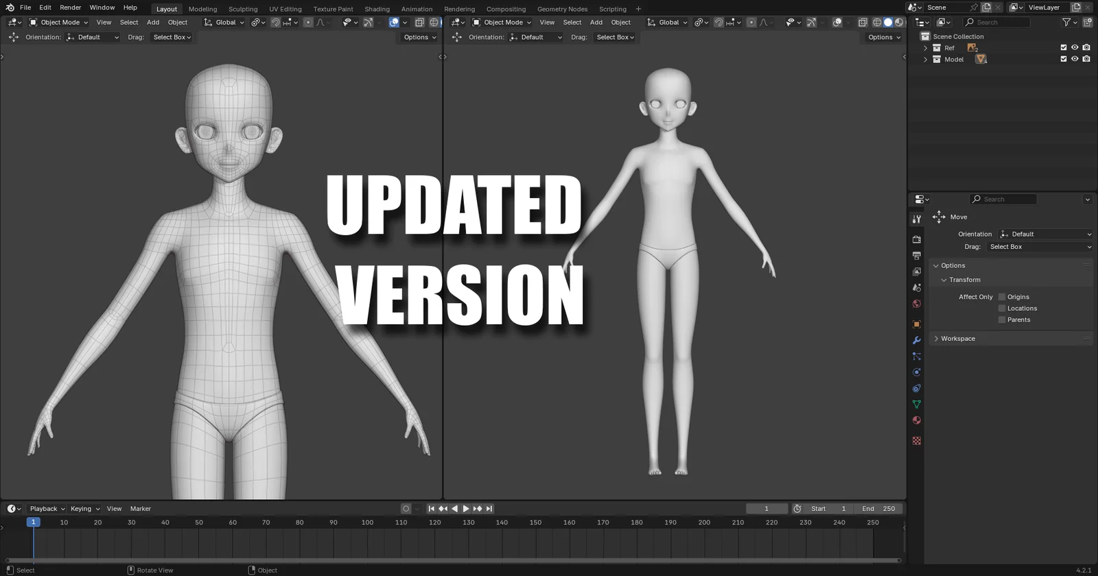 An untextured and unrigged anime-style male base mesh. This model serves as a blank starting point for custom character creation. It lacks UV unwrapping, textures, and an armature, requiring users to configure these elements and add their own clothing or details to complete the design.