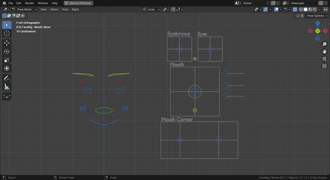 Anime FaceRig is a tool for setting up facial rigs on anime-style characters in Blender. It generates a streamlined rig utilizing three main controllers designed to drive facial expressions, reducing the number of bones required for animation. The add-on works by automatically linking drivers to existing shape keys on your model, and can generate missing shape keys if necessary.