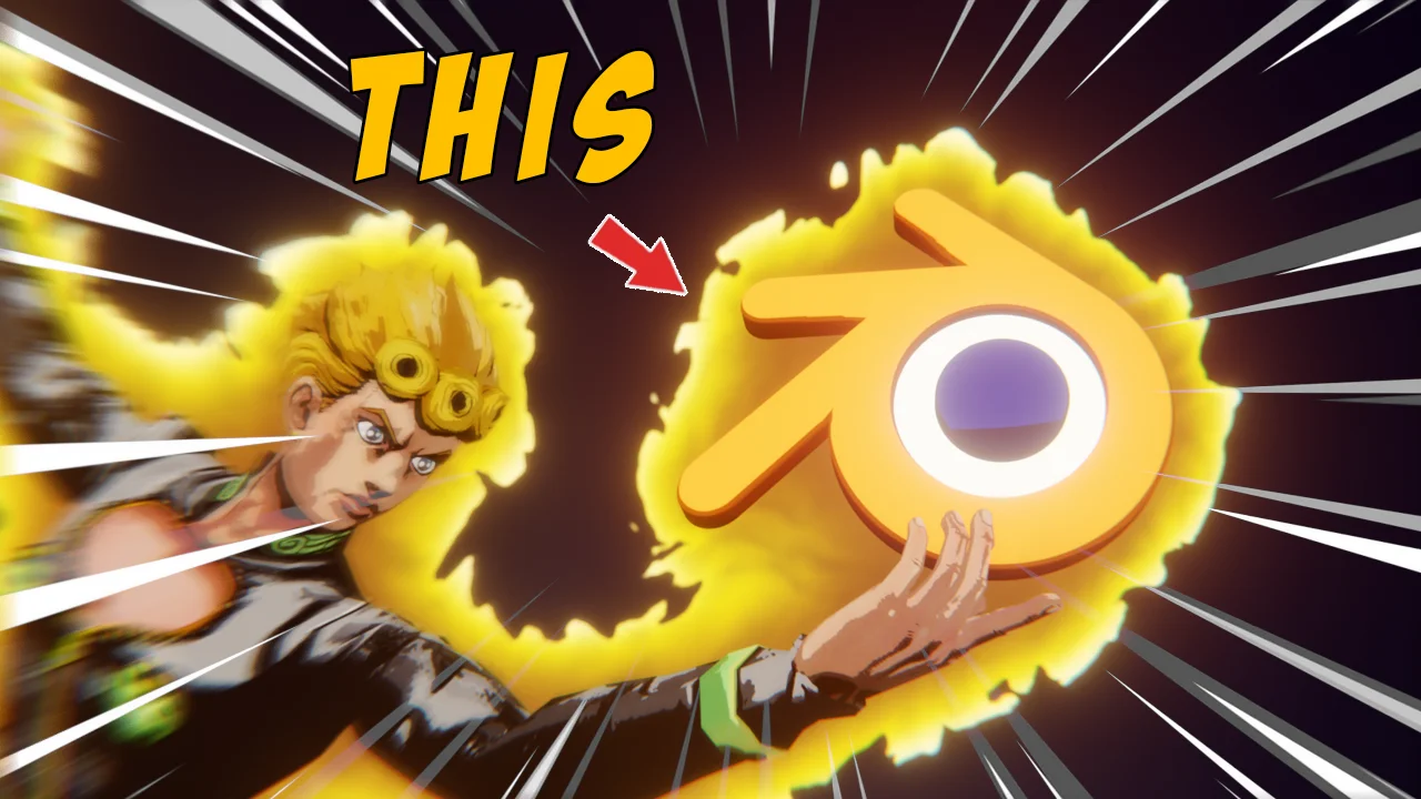 A Blender file containing an anime-style aura effect setup. The scene includes three sample aura materials with labeled nodes in the Shader Editor to help users customize the effect. Additionally, a Geometry Nodes setup is provided with exposed parameters for further control. The character model shown in promotional materials is not included.