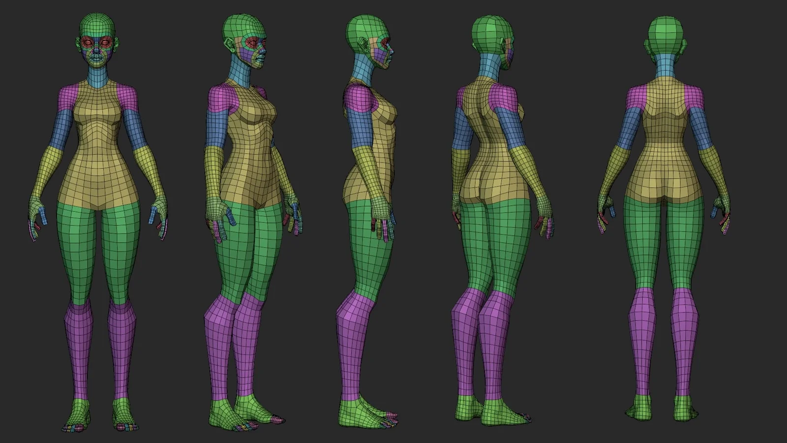 A low-poly stylized female character basemesh inspired by the character designs of Arcane. The geometry is configured with distinct Blender sculpt mode face sets for each limb and individual fingers, enabling quick adjustments using the pose brush. The model is kept intentionally low-poly, particularly around the face, to serve as an optimal starting point for character sculpting and proportion blocking. The mesh includes complete hands, fingers, feet, and toes, but does not include UV maps. It is provided in .blend, .fbx, and .obj formats.