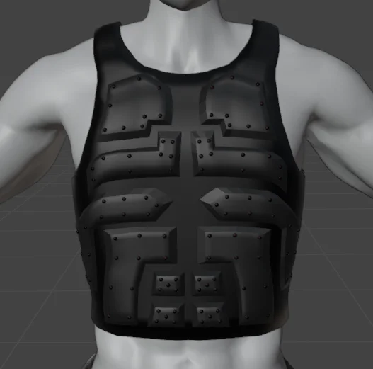 A low polygon armor vest model created in Blender. The asset is intended to be used as clothing and apparel for custom 3D characters and avatars.