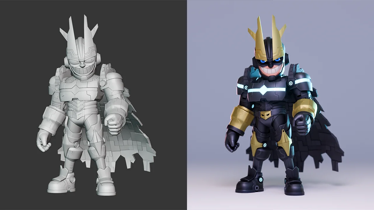 This package contains a series of 14 non-narrated process videos demonstrating the creation of a chibi character in Blender. The recordings document the entire workflow, covering the initial blockout, sculpting, retopology, modeling, material setup, rigging, posing, and lighting phases.
