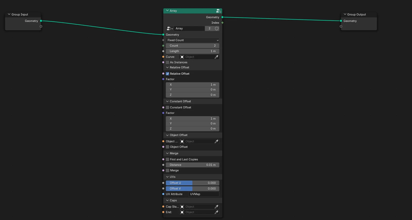 This Geometry Nodes setup replicates the functionality of Blender's standard array modifier. It extends the default behavior by providing index outputs and the option to generate array copies as instances rather than realized geometry.
