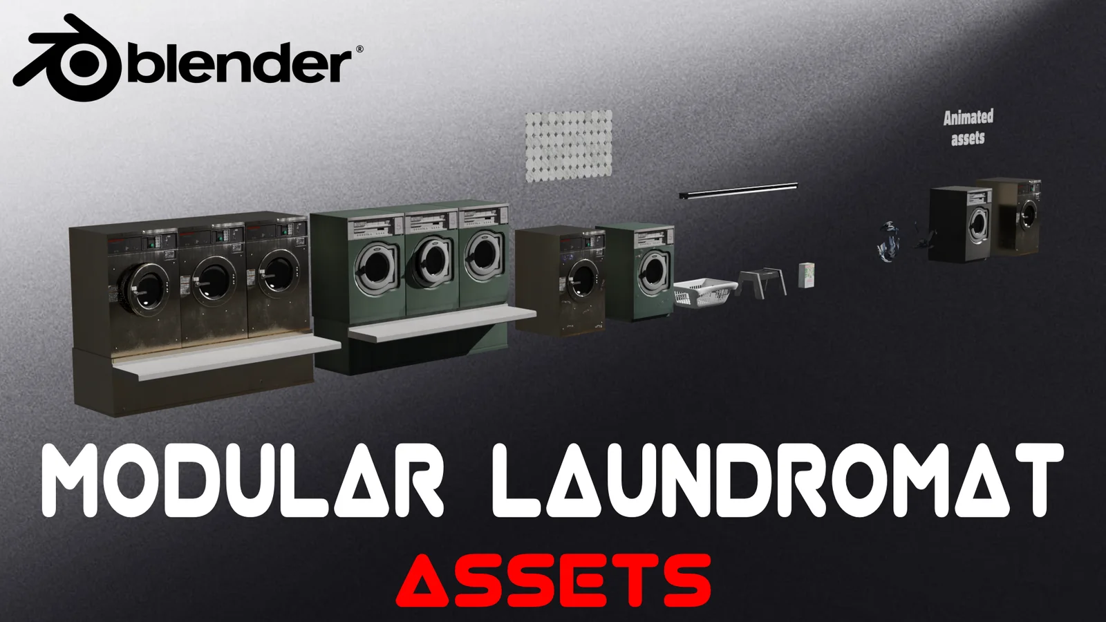 A collection of 3D models extracted from a laundromat scene project. The assets are provided as a standard blend file and are designed to be modular, allowing users to construct their own custom laundromat interior environments.