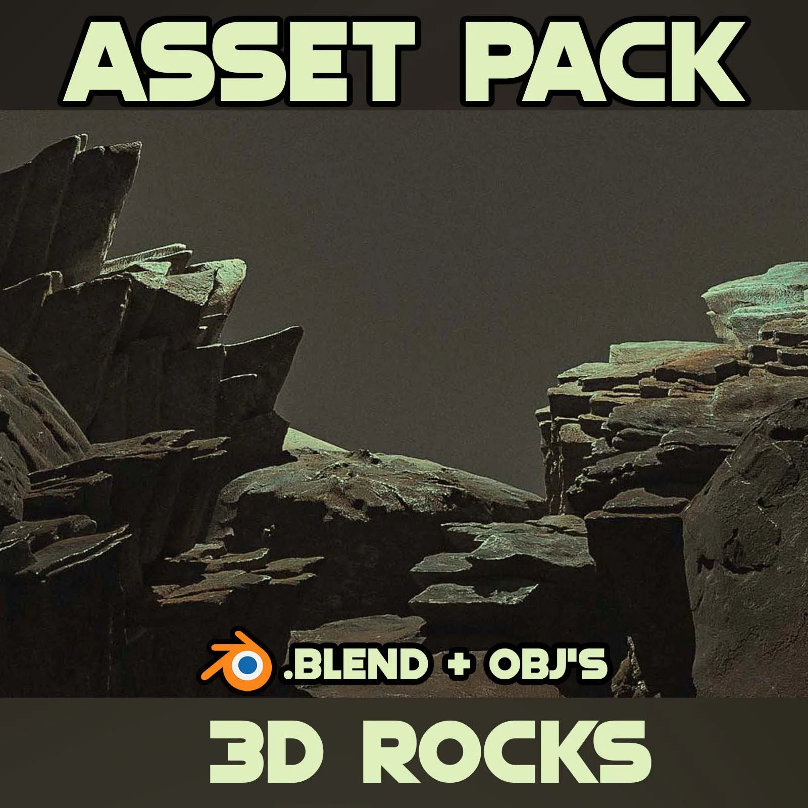 This collection includes multiple 3D rock models designed for use in environment scenes. The assets are provided in both OBJ and native .blend formats. Originally intended as companion assets for a tutorial, they can be utilized in general scene composition and nature environments.
