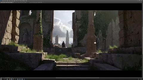 Alongside the 3D geometry, the package includes the final Blender environment scene, original Photoshop PSD files, and 10 stencils. For learning, it provides two introductory videos covering composition, four un-narrated timelapses detailing the 3D and 2D workflows, and two additional timelapses focusing on 3DCoat asset creation. High-end hardware is recommended for handling the high-resolution files.