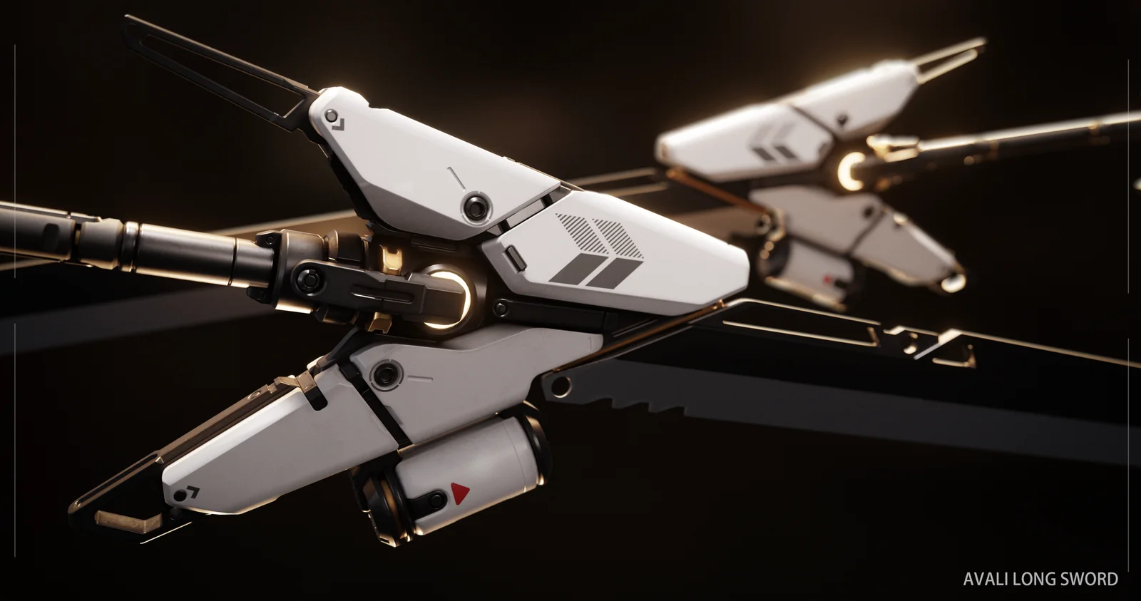 A 3D model of an Avali-themed longsword complete with a matching sheath. The asset is designed using a PBR workflow and is optimized primarily for rendering purposes. The download includes the original Blender file, a Substance 3D Painter project, an FBX export, three 4K texture images, and a Unity package.