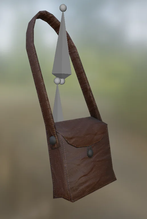 A rigged 3D model of a bag designed to be attached to character armatures. The model includes a basic bone hierarchy intended for connection to a character's chest and hips. An additional control bone is provided to allow for secondary motion or adjusting the bag's placement.