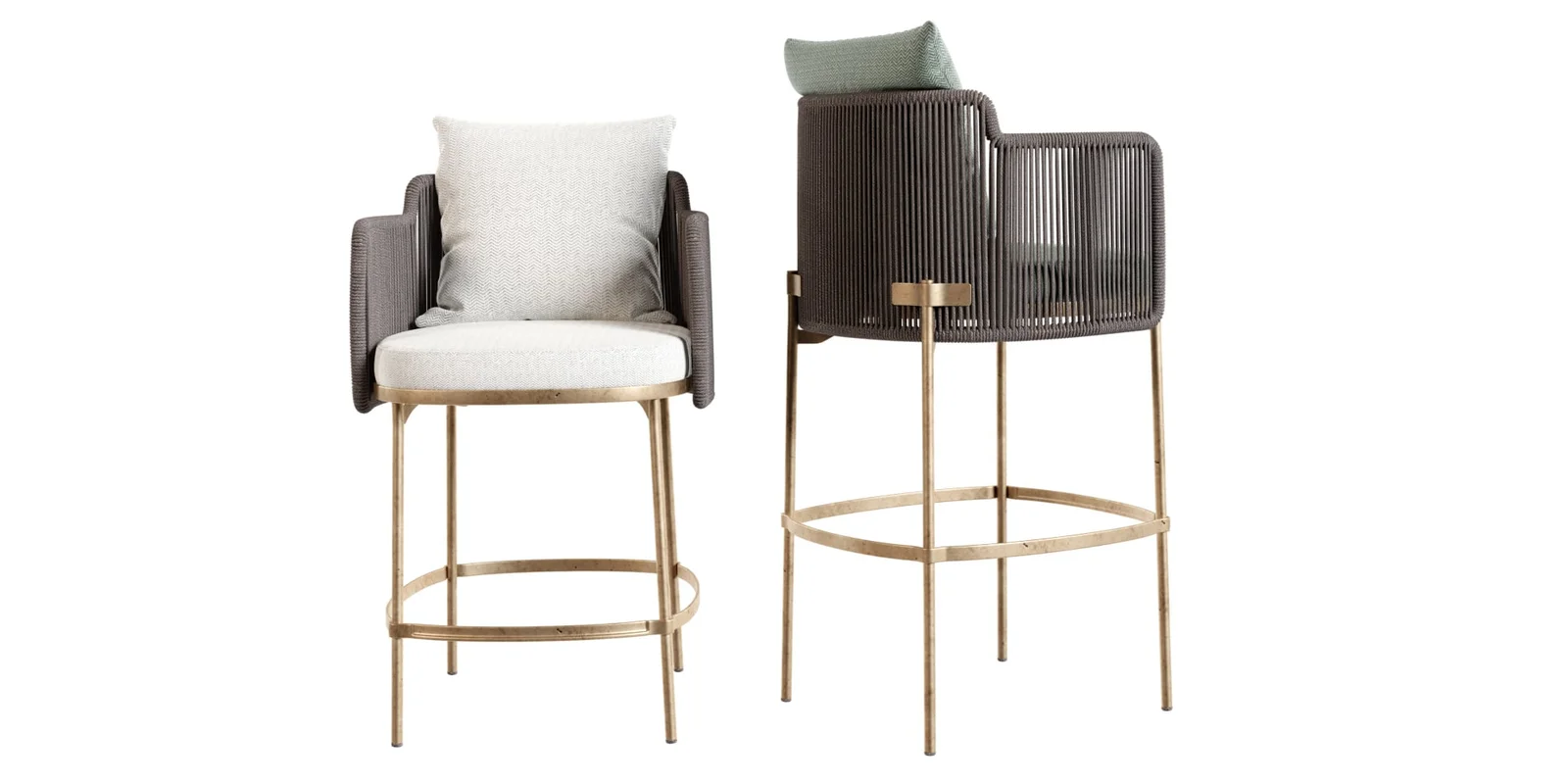 A 3D model of a modern bar chair, prepared for use in Blender. The asset is fully textured and materials are configured for rendering in both Cycles and EEVEE. It is set up for integration with Blender's Asset Browser, allowing for drag-and-drop placement directly into scenes. The download includes the .blend file, textures, and reference renders.