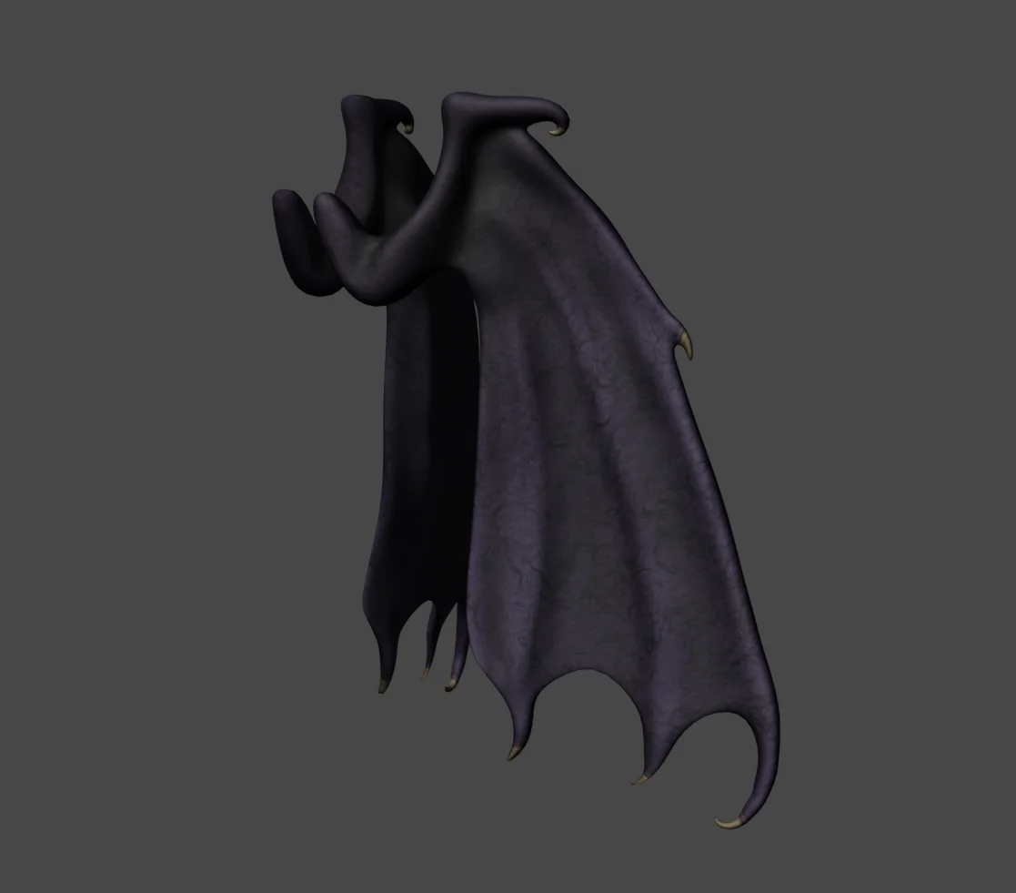 This is a 3D model of bat wings provided in FBX format. The geometry is unwrapped and includes a set of textures. The model is not rigged and is intended to be weight-painted directly to a character's chest by the user.