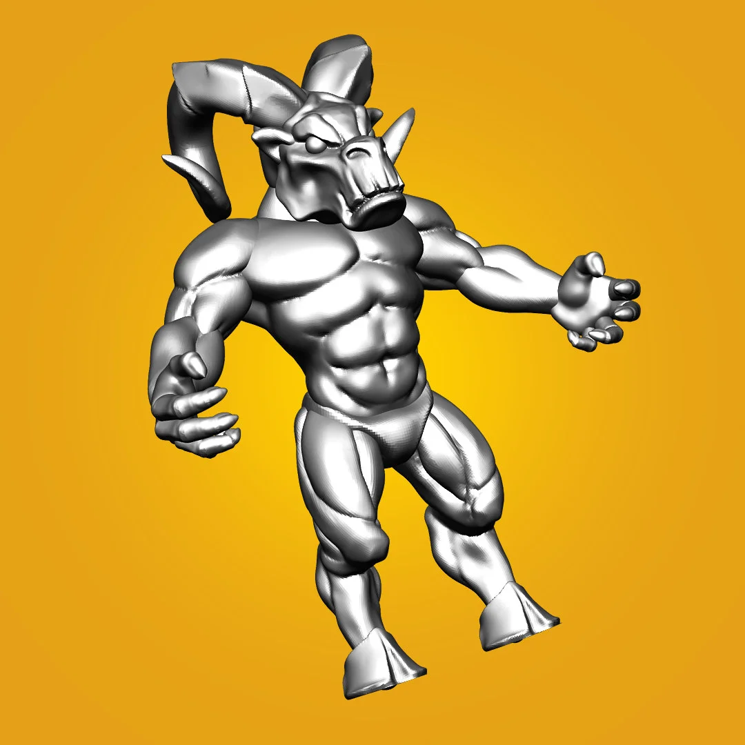 This product provides a fully rigged 3D model of a beastman character. It is intended to be used as a practical example for users looking to study complex character rigging setups and mesh deformation.