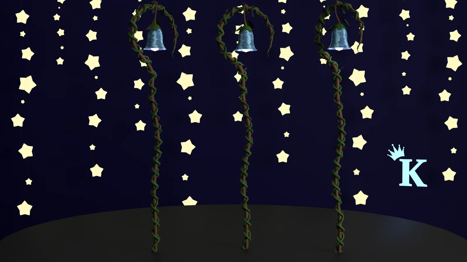 A 3D model of a bell flower staff prop. The asset is rigged with five bones and includes weight painting for posing or animation. It contains 7,723 polygons across three materials, with textures created in Substance Painter. The model is provided in FBX format.