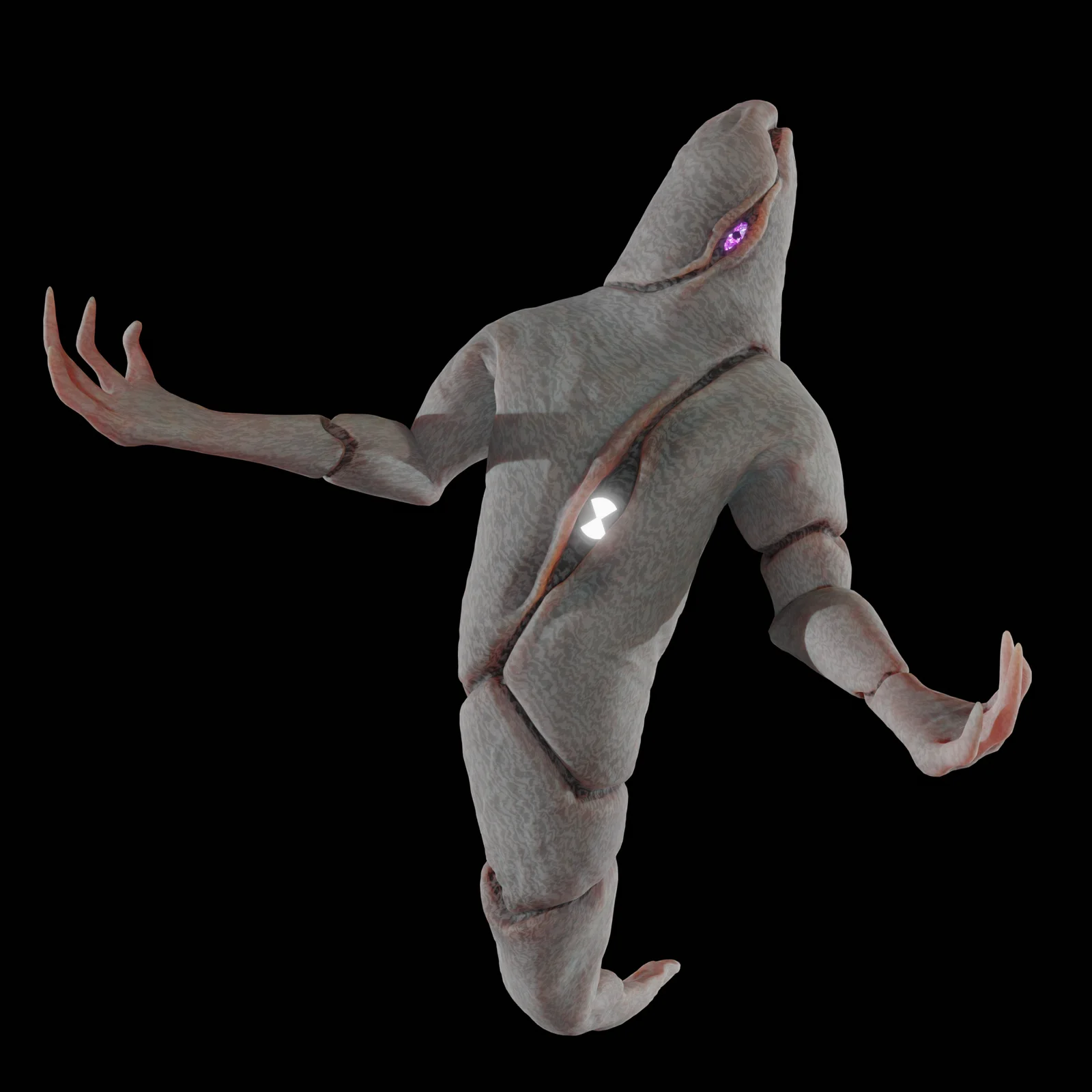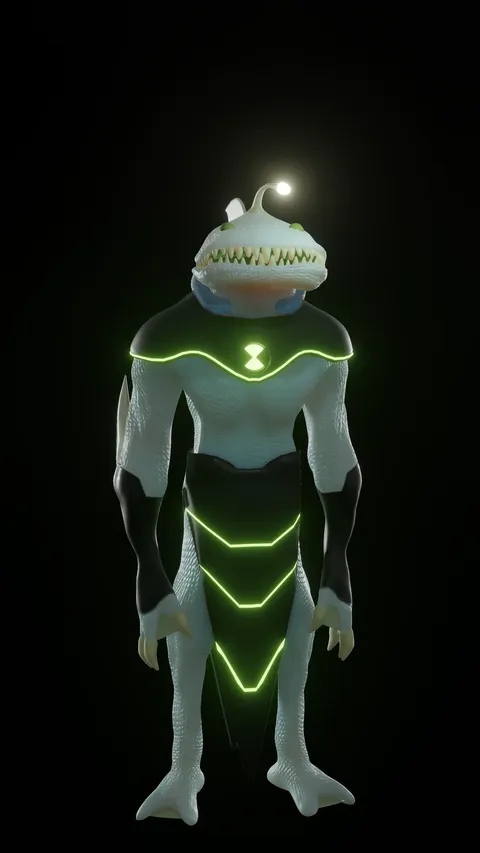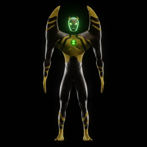 A 3D character model of Ghostfreak from the classic Ben 10 animated series. The mid-poly asset is fully rigged for posing and animation. The character's materials utilize subsurface scattering maps, displacement maps, and custom semi-procedural textures.