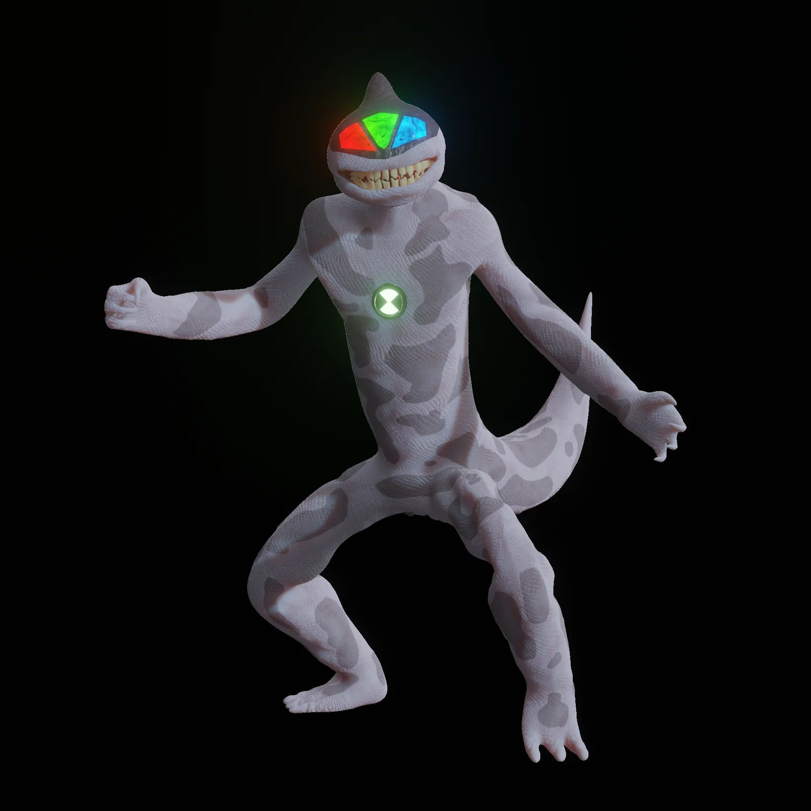 A mid-poly 3D character model based on the Chamalien alien from the Ben 10 franchise. The model is fully textured, featuring subsurface scattering maps to define the surface materials. It includes a basic skeletal rig generated through Mixamo, though it does not contain a rig for the character's tail.