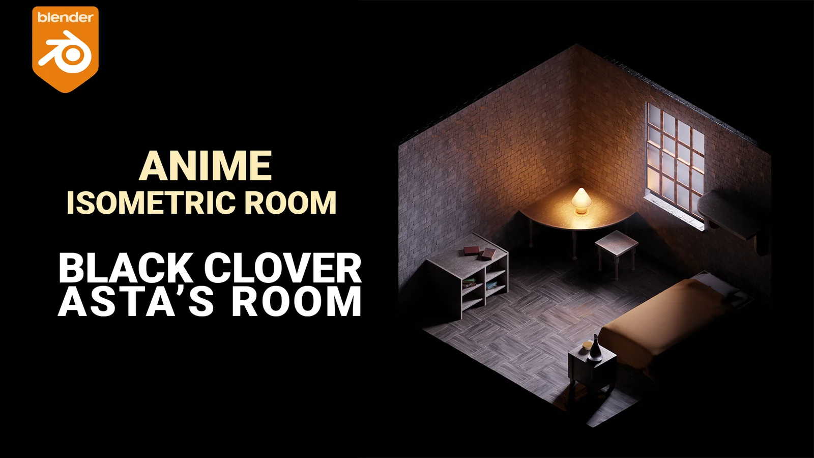 This product provides a complete 3D scene file of Asta's room from the anime series Black Clover. The Blender file encompasses the interior environment and features clean topology along with optimized materials. The scene is prepared for use in animations, rendering setups, and custom fan art projects.