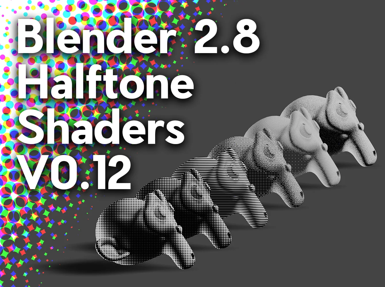 This collection provides six flexible halftone patterns designed for creating non-photorealistic shaders in Blender. The included pattern types are dots, inverted dots, lines, dither, smooth dither, and noise. Most patterns are entirely procedural, while the dither options utilize a small base texture. They process full RGB color information and offer adjustable parameters for brightness, contrast, scale, rotation, and RGB channel offsets. The shaders are built to be used with the EEVEE render engine, as they rely on the Shader-to-RGB node to achieve their stylized look. While the base patterns can be used in Cycles, they require alternative input methods. The package includes six sample materials to demonstrate how to integrate the patterns into custom node setups.