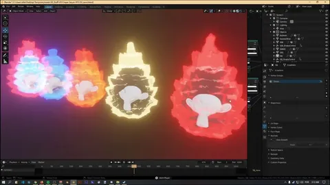 This asset pack contains a collection of Dragon Ball-inspired Super Saiyan aura effects created for Blender. The included files allow users to examine or use the visual effects in their own projects. An accompanying tutorial is provided to demonstrate the step-by-step process of creating these stylized energy auras from scratch.