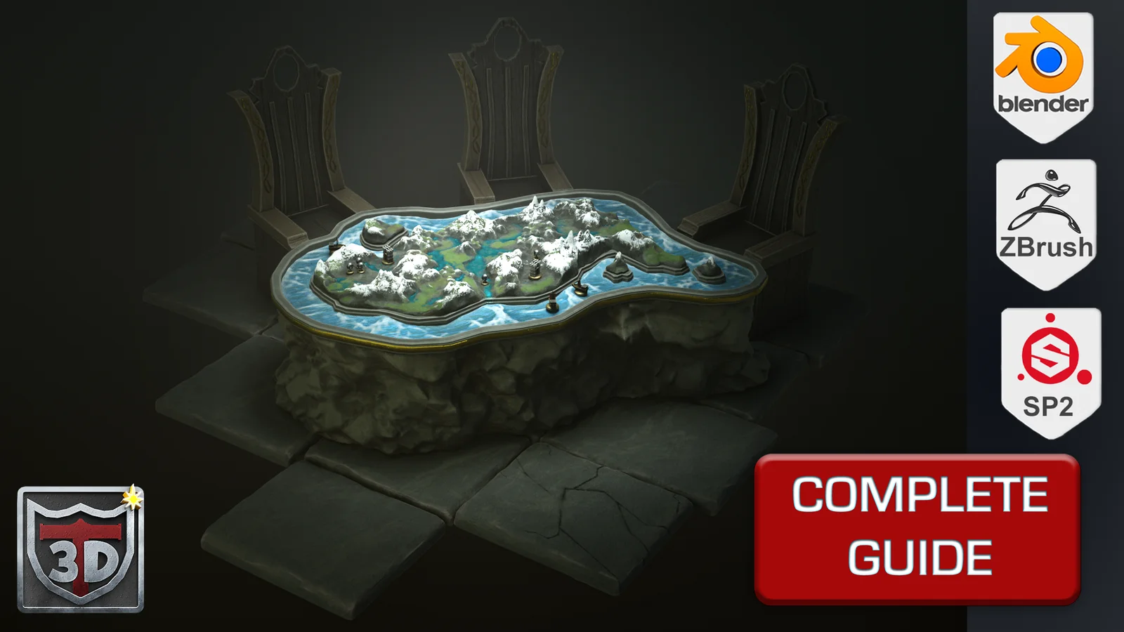 This package provides the complete project files for a stylized map room environment, originally created alongside a video tutorial. The packed Blender file contains the fully modeled and sculpted 3D scene, cleaned and organized to remove unused data.
