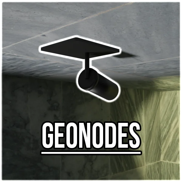 This geometry node setup provides a parametric system for generating custom lamp designs. Users can adjust parameters to configure the overall dimensions of the lamp, altering its length, width, and height. The node tree includes specific controls for the lighting elements, allowing adjustments to the number, size, and type of bulbs. Additional inputs control structural design elements like curves and arches, and the model supports interchangeable material assignments for finishes like wood and metal.