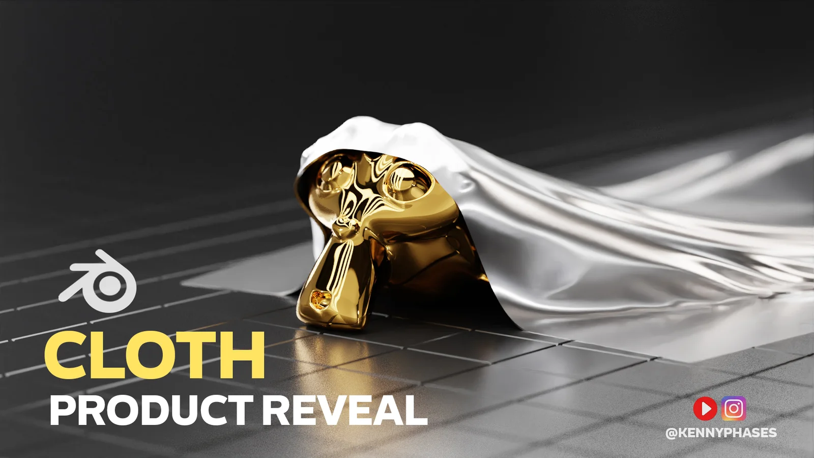 A template scene for creating product reveals using cloth simulations in Blender. The file provides a pre-configured setup intended to help users animate dynamic fabric uncovering an object for product visualizations and presentations.