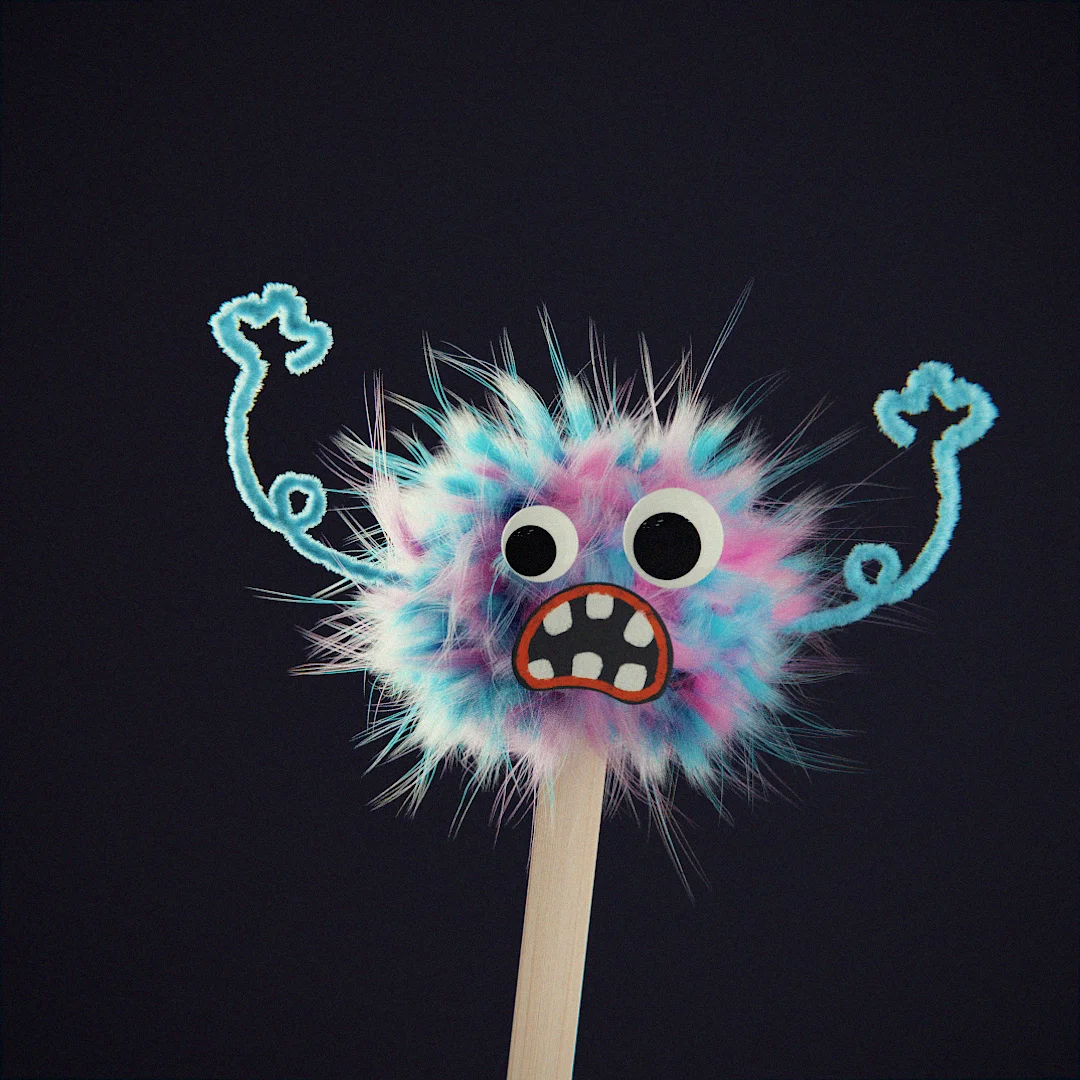 A Blender project file containing a custom particle system configured to mimic the fuzzy appearance of pipe cleaners. The setup was originally designed for character limbs and includes the particle settings used to generate the effect on arm geometry.